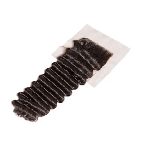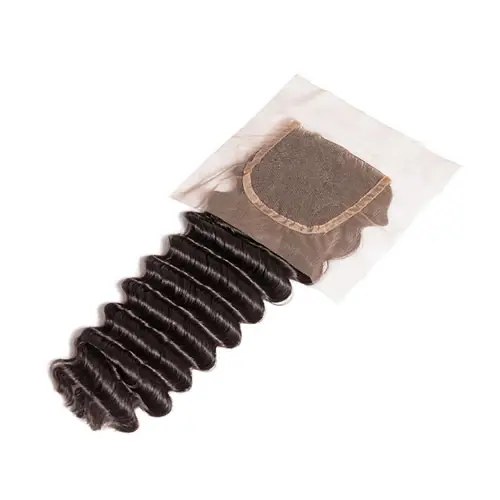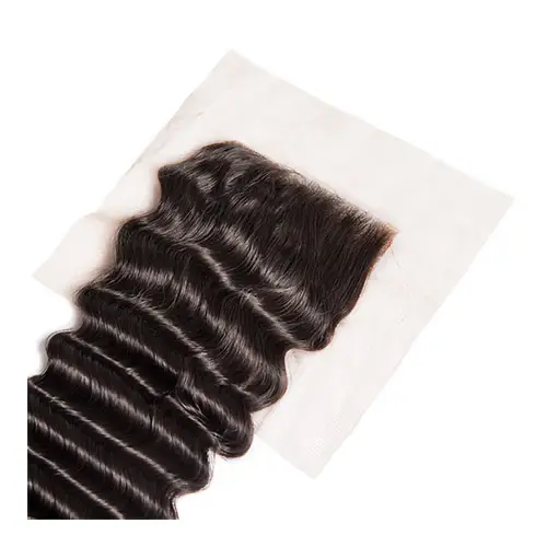 Braziliaanse Vetersluiting 4×4 Diepe Golf Gratis Deel Stijl Met Baby Haar 100% Menselijk Remy Haar Natuurlijke kleur